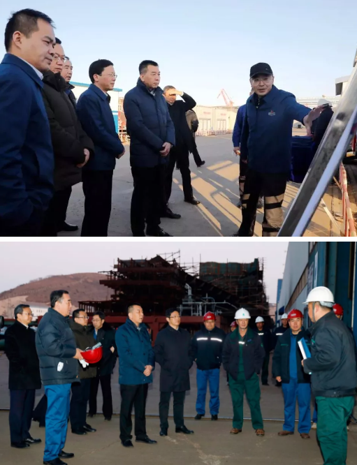 ????近日,中國船舶集團有限公司黨組成員、副總經理孫偉到中國船舶集團有限公司所屬渤海造船廠集團有限公司、大船集團渤海船舶重工有限責任公司進行調研,專項檢查質量、安全與環保工作。孫偉參觀了兩家單位生產現場,重點檢查了部分項目,聽取了有關情況匯報,與單位領導班子成員進行座談,并對下一步工作提出要求。