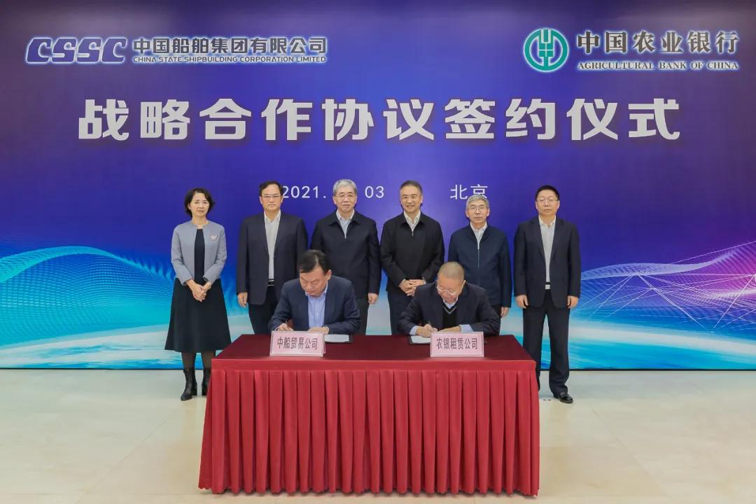 會上,在雙方領導的共同見證下,中國船舶集團旗下中船貿易與農業銀行農銀租賃簽署相關合作協議。