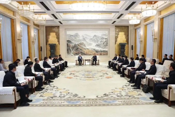 4月12日,中國船舶集團有限公司黨組書記、董事長徐鵬在武漢拜訪湖北省委書記、省人大常委會主任王忠林。雙方圍繞深化戰(zhàn)略合作、共謀發(fā)展新篇進行深入交流并達(dá)成共識。湖北省委常委、武漢市委書記郭元強,省委常委、秘書長彭勇,副省長程用文,中船集團黨組成員、副總經(jīng)理彭原璞參加會談。