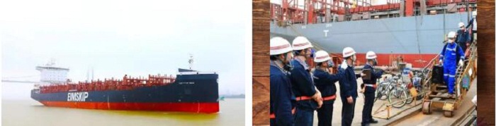 ?? H5647船是2150TEU(標準集裝箱)系列船的第三艘,總長179.4米,型寬30.95米,型深17.4米,滿載2150箱,設計吃水9米;配置了廢氣再循環(huán)(EGR)系統(tǒng)和脫硫系統(tǒng),可降低硫氮化合物的排放,滿足國際海事組織(IMO)Tier III 排放要求,是一艘綠色、環(huán)保的船舶。