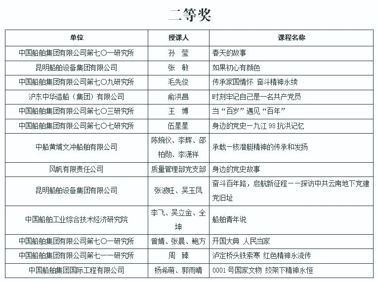 為慶祝中國共產黨成立100周年,深入推進黨史學習教育,由中國船舶集團黨群工作部主辦,中國船舶集團黨校承辦的慶祝中國共產黨成立100周年黨課評選活動結果今天正式揭曉。