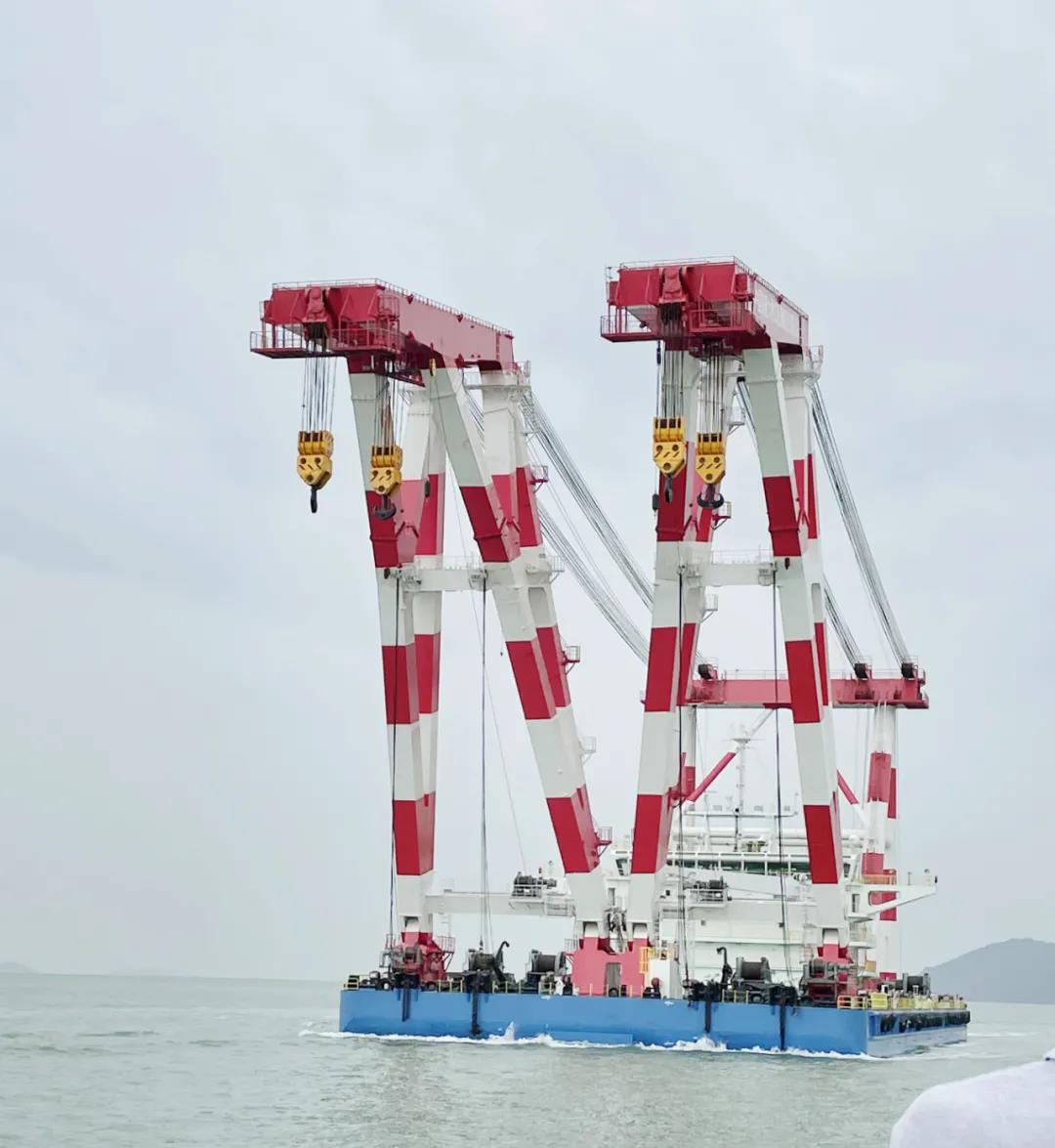 七〇八所研發(fā)團隊在船型設計中充分考慮項目鋼梁吊裝航空限高及工作水域復雜等限制條件。后期,該船還可改裝為2200噸雙臂架變幅式起重船,用于海上風電安裝等工程作業(yè),大大拓展了其實用性。該船將在澳門工作19個月,待完成大橋施工使命后,再次回到船廠進行二期改造。