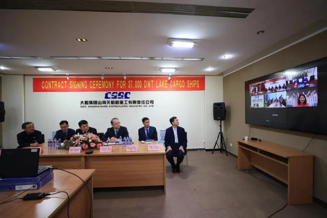 6艘16000TEU集裝箱船簽約現場(上圖),4艘37000噸大湖型散貨船簽約現場(下圖)。