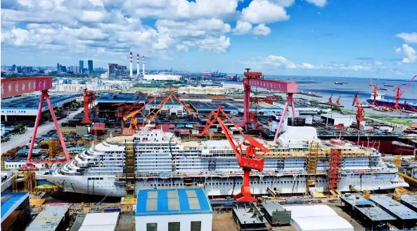 2019年10月18日,中國船舶集團高質量發展“一號工程”——中國首艘國產大型郵輪在外高橋造船正式開工,全面進入實質性建造階段,標志著中國船舶工業正式跨入大型郵輪建造新時代;2020年11月10日,迎來塢內連續搭載總裝里程碑節點,標志著中國船舶工業在摘取“皇冠上最后一顆明珠”的征程上,又邁出了堅實的一大步;2021年10月18日,如期實現全船貫通;12月17日,如期實現塢內起浮,標志著該工程從結構和舾裝建造的“上半場”全面轉入內裝和系統完工調試的“深水區”。2022年8月8日,第二艘國產大型郵輪正式開工建造,大型郵輪邁入“雙輪”建造時代,標志著中國船舶工業已初步掌握大型郵輪設計建造關鍵核心技術,實現批量化、系列化建造指日可待。備受國內外關注的首艘國產大型郵輪目前已全面進入內部裝潢和設備(系統)調試關鍵階段,朝著最終的命名交付里程碑節點穩步邁進。