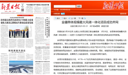 近日,中國船舶集團旗下中船科技子公司中船風電和哈密國投聯(lián)合開發(fā)的新疆哈密百萬千瓦風儲一體化項目首臺風機成功并網(wǎng)發(fā)電,央視《新聞聯(lián)播》、新華網(wǎng)和《新疆日報》等紛紛關注報道。