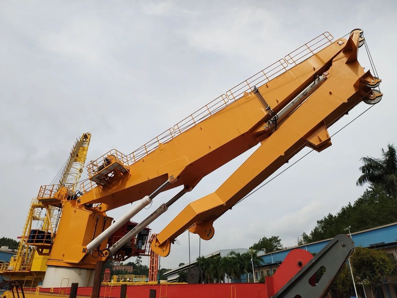 該起重機(jī)相較于傳統(tǒng)海工起重機(jī)大有不同,它對(duì)標(biāo)國(guó)際一流海工起重裝備,有更為嚴(yán)格的行業(yè)標(biāo)準(zhǔn)及規(guī)范,更多元的功能需求。該起重機(jī)在現(xiàn)有的海工吊基礎(chǔ)上增加了主動(dòng)安全防護(hù)(AOPS)、智能化安全防護(hù)、油缸泄漏檢測(cè)等多種功能,這些功能均是華南船機(jī)首次嘗試設(shè)計(jì),其創(chuàng)新性與難度不言而喻。