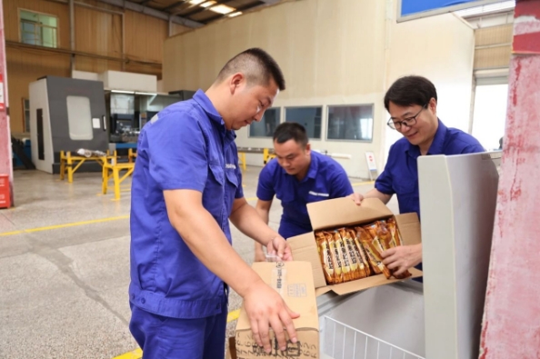 防暑降溫的藥品,冰涼解渴的飲品,又大又甜的西瓜,干凈涼爽的午休場(chǎng)所……中船集團(tuán)旗下中南裝備、中船陜柴、中船綠洲、中船河柴多措并舉為一線員工撐起關(guān)愛“遮陽傘”。