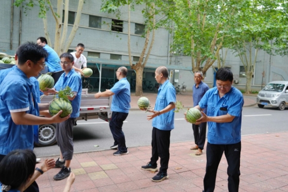 “這西瓜真新鮮!”“今年的西瓜肯定甜!”一個(gè)個(gè)滾圓的西瓜遞到職工們汗?jié)竦氖种校蠹疫呅段鞴线吜奶?,現(xiàn)場(chǎng)傳來陣陣歡笑。此前,中船河柴已為一線職工發(fā)放綠豆、冰糖等防暑降溫用品,在生產(chǎn)現(xiàn)場(chǎng)安排專人熬煮綠豆湯,及時(shí)有效服務(wù)職工。接下來,中船河柴將結(jié)合天氣情況,動(dòng)態(tài)調(diào)整“送清涼”計(jì)劃,分批次發(fā)放防暑降溫物資,為夏季安全生產(chǎn)提供堅(jiān)強(qiáng)保障。